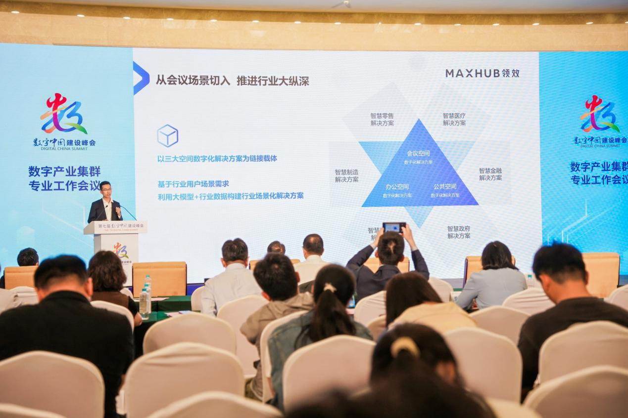 2023年,国家印发《数字中国建设整体布局规划》,明确提出建设数字中国是数字时代推进中国式现代化的重要引擎,是构筑国家竞争新优势的有力支撑。近日,第七届数字中国建设峰会作为落实该规划的一项重大举措,在福州隆重举行。 MAXHUB积极响应国家政策,携高效会议解决方案等新品亮相峰会。期间,MAXHUB副总裁陈思炯受邀出席数字产业集群工作会议,以《会议小切口,推进企业数字化场景大纵深》为主题发表演讲,分享助推产业集群数字化的实践经验及创新思考,并与各界行业精英、专家学者共商产业集群的数字化发展蓝图。