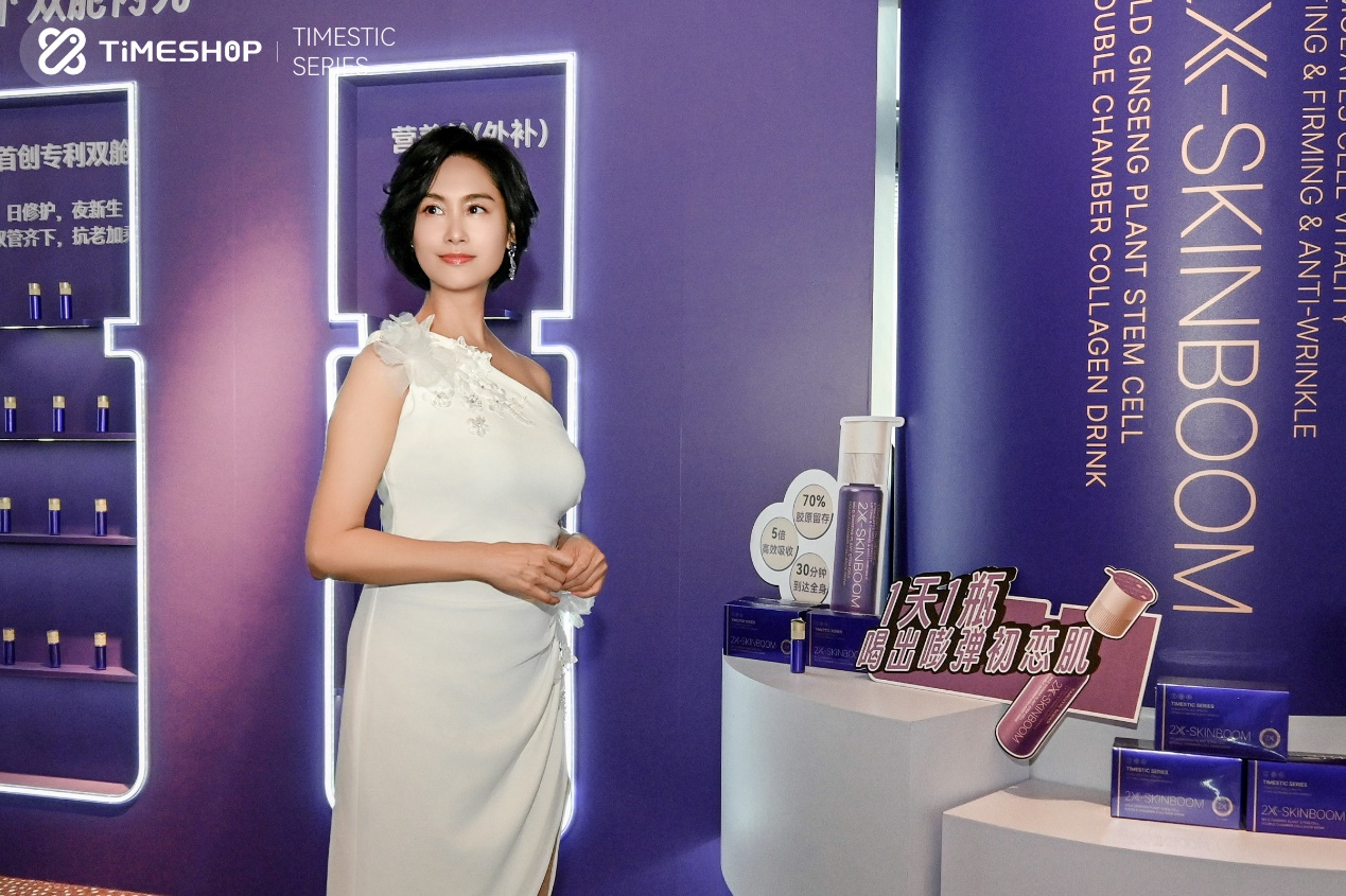 买回时间,一起享受青春的美好。3月27日下午 TimeShop新品发布会“倾世紫光 BOOM现年轻”于中国最高建筑上海中心大厦105层J酒店成功举办。TimeShop品牌大使朱茵莅临现场,揭开新品“紫光宝盒”——双舱饮2X-SKINBOOM的面纱。TIMESHOP(中国)香港执行总Jimmy、(中国)大陆执行总裁甘女士、(中国)大陆营销总裁张先生、品牌首席研发顾问鲁博士、品牌战略合作伙伴、抖音电商全球购膳食营养行业运营经理、小红书行业策划负责人,以及各路媒体代表,共鉴双舱饮2X-SKINBOOM的亮相。