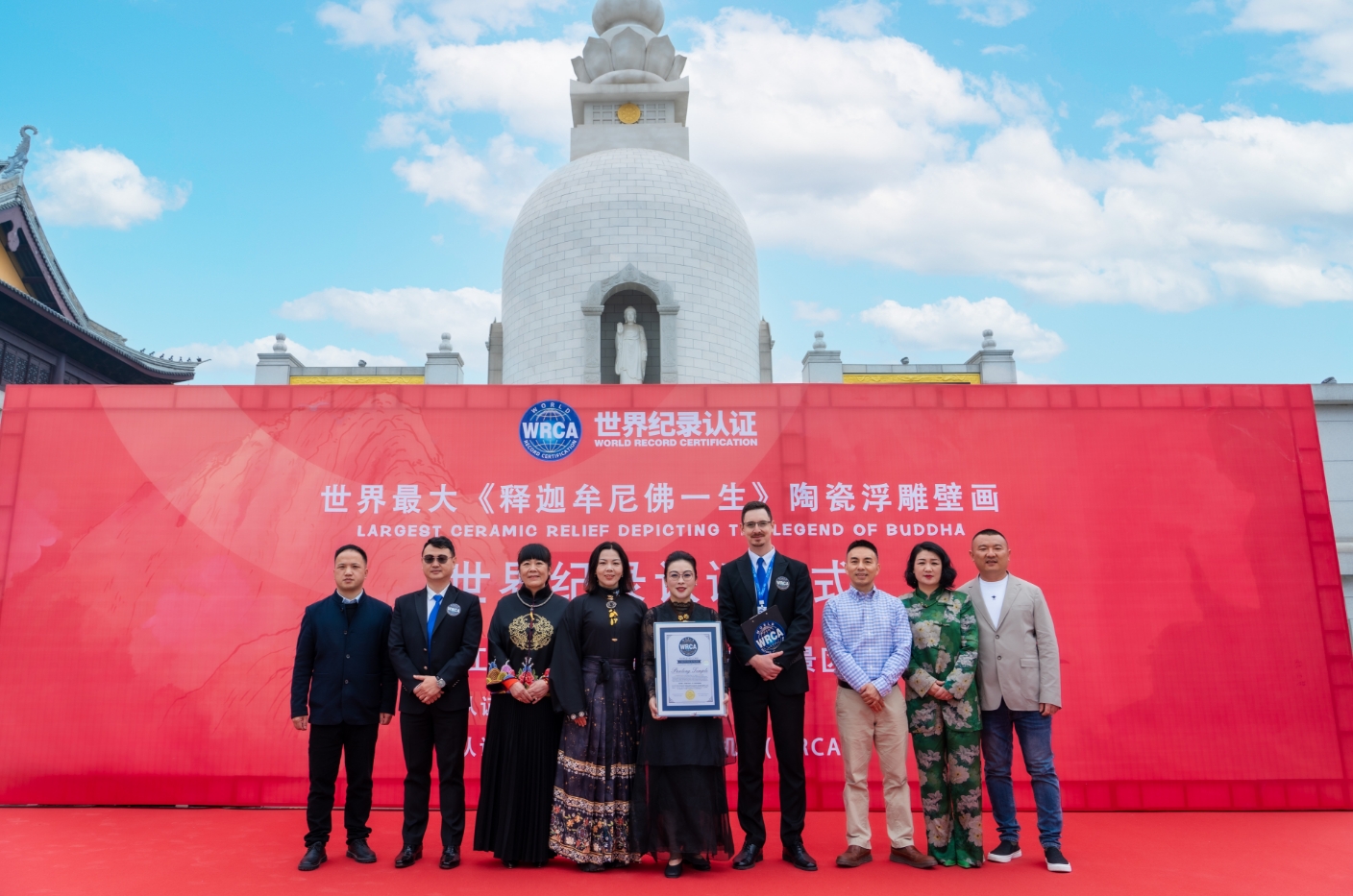 4月8日,国家3A级旅游景区—江苏盐城阜宁盘龙古寺举办《释迦牟尼佛一生》陶瓷浮雕壁画世界纪录认证仪式,见证该景区在48米高的汉白玉舍利宝塔的二层内,藏有《释迦牟尼佛一生》陶瓷浮雕壁画51幅,世界纪录驻华申报中心主任赵青太、世界纪录认证官马克西姆KRIUKOV MAKSIM、中方代表刘一哲及景区负责人衍力等出席认证仪式。