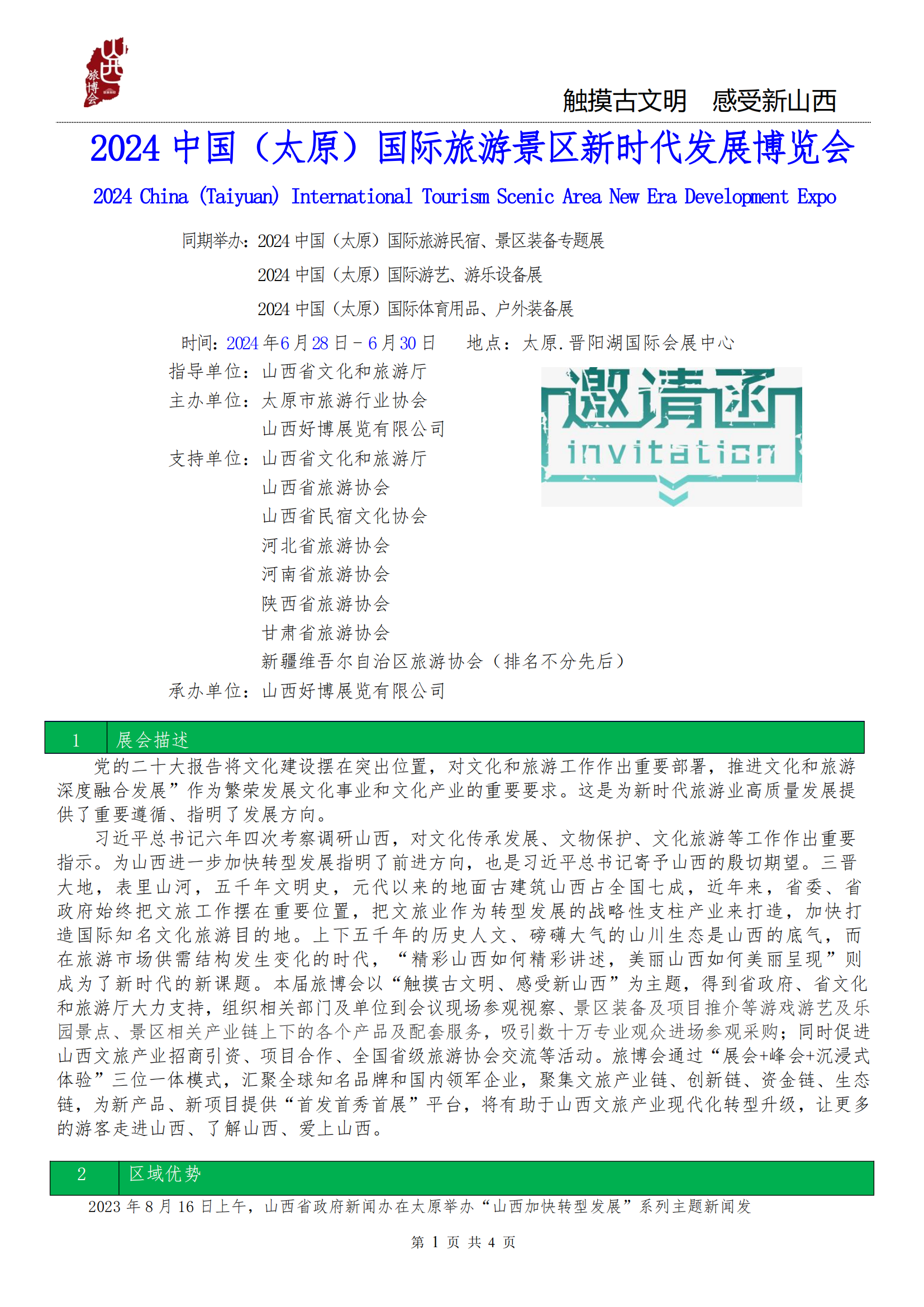 为山西进一步加快转型发展指明了前进方向,也是习近平总书记寄予山西的殷切期望。三晋大地,表里山河,五千年文明史,元代以来的地面古建筑山西占全国七成,近年来,省委、省政府始终把文旅工作摆在重要位置,把文旅业作为转型发展的战略性支柱产业来打造,加快打造国际知名文化旅游目的地。上下五千年的历史人文、磅礴大气的山川生态是山西的底气,而在旅游市场供需结构发生变化的时代,“精彩山西如何精彩讲述,美丽山西如何美丽呈现”则成为了新时代的新课题。本届旅博会以“触摸古文明、感受新山西”为主题,得到省政府、省文化和旅游厅大力支持,组织相关部门及单位到会议现场参观视察、景区装备及项目推介等游戏游艺及乐园景点、景区相关产业链上下的各个产品及配套服务,吸引数十万专业观众进场参观采购;同时促进山西文旅产业招商引资、项目合作、全国省级旅游协会交流等活动。旅博会通过“展会+峰会+沉浸式体验”三位一体模式,汇聚全球知名品牌和国内领军企业,聚集文旅产业链、创新链、资金链、生态链,为新产品、新项目提供“首发首秀首展”平台,将有助于山西文旅产业现代化转型升级,让更多的游客走进山西、了解山西、爱上山西。
