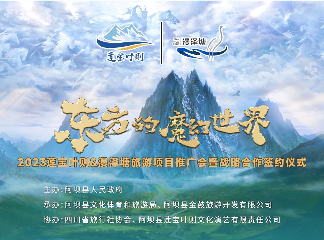 2023年4月25日,东方的魔幻世界-2023莲宝叶则&漫泽塘旅游项目推广会暨战略合作签约仪式在成都世纪城洲际酒店隆重举行。随着疫情阴霾消散,旅游信心开始恢复,消费者对旅游产品的品质需求也升级到一个新的阶段。在此背景下,锚定“供给品质化、业态多样化、发展全域化、品牌国际化”的目标,阿坝县以国家全域旅游示范区创建为主线,充分利用优势旅游资源,紧抓旅游市场复苏机遇,借助此次战略合作,创新民族特色旅游发展之路,擦亮阿坝旅游形象金名片!