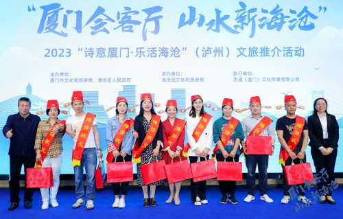 2023年4月14日下午,“厦门会客厅·山水新海沧”2023“诗意厦门·乐活海沧”文化和旅游推介会在泸州江畔大酒店举行。该活动由厦门市文化和旅游局、海沧区人民政府主办。厦门市文化和旅游局相关负责人严昌祥、泸州市文化广播电视和旅游局相关负责人副局长 何自慧在会上发表了致辞,并针对推动文旅融合,促进跨区域交流合作,多举措激发旅游市场活力,推进文旅消费业态提质增效等方面交流了心声。两地的文化和旅游部门、知名旅行商、文旅企业代表以及媒体记者等百余名嘉宾欢聚一堂,共话文旅融合新发展。