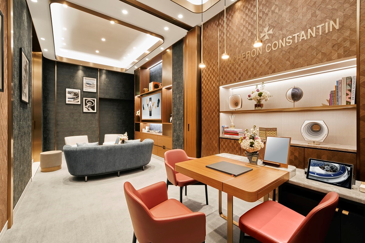 店内设有贵宾室,陈列有珍稀象牙茶几,和带有艺术座椅的贵宾试衣间